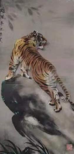 曹志军,延安市宝塔区人,1965年出生,从小喜爱写字画画,直到现在从未放弃过。1982年与李福堂、陈步澜老师结缘棉絮画创作,从此热爱上了这门艺术。1998年延安荟萃工艺美术厂正式成立以后,他成为厂里唯一的工艺美术技师。在自己的工作岗位上尽职敬业,创作了很多优秀的作品,包括山水、花鸟、动物等题材的棉絮画艺术品,得到了老师和员工的一致好评。1987年厂里脱产改型后,为了自己喜爱的棉絮画继续发展,他四处奔波,在汉中成立了工作室。2016年成立陕西省新丝路促进会棉絮画研究会,被聘为副会长,棉絮画第四代传承人。2021年8月份特聘为延安书画社工贸有限公司专职画家、棉絮画工作室高级技师。本次百虎展从2021年8月开始创作,经过一年多的日日夜夜,终于将60多件艺术作品在延安文化艺术中心美术馆展出。